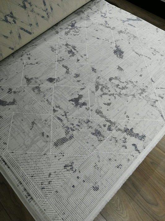 Dekhera Plato Parlak Dokuma Modern Halı Sl117 Beyaz Mavi