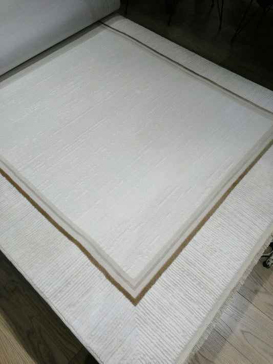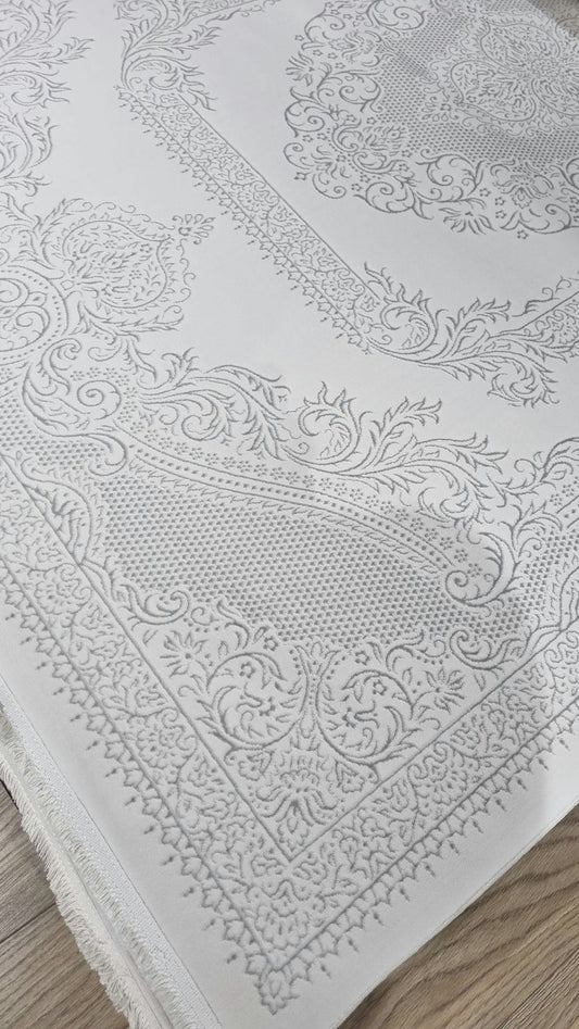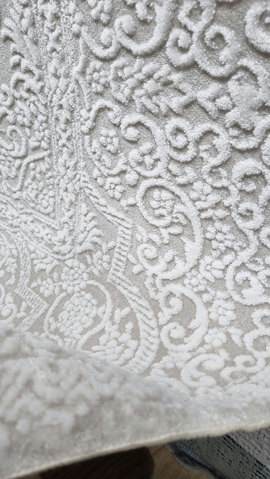 Dekhera Fer Parlak Kadife Dokuma Halı 1151 Beyaz