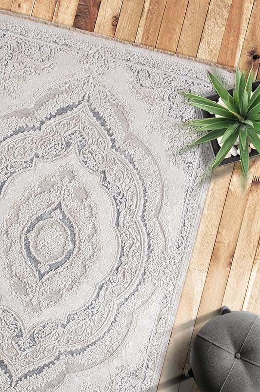Etnik Kabartma Desenli Halı Dekhera Ella C387 Gri Krem