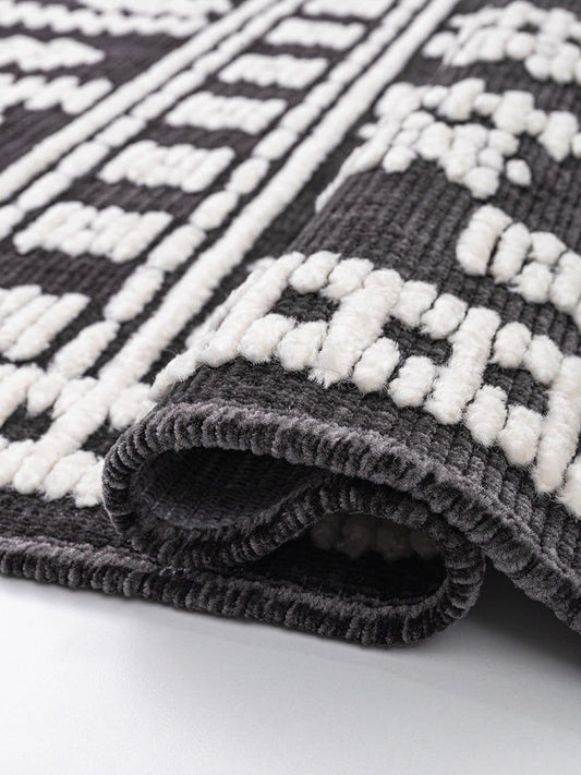 Fil Model Siyah Beyaz Halı Dekhera T1049-2