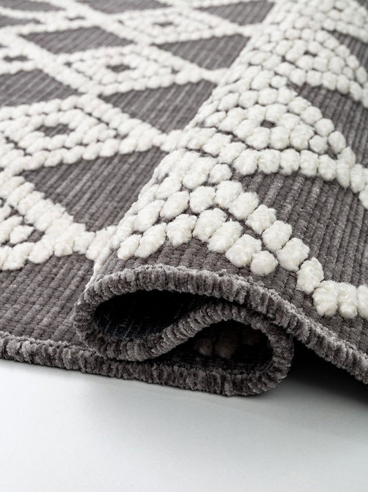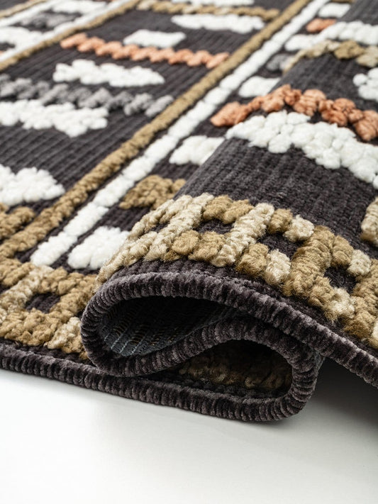 Etnik Desenli Kabartma Halı Dekhera Ella C045 Antrasit