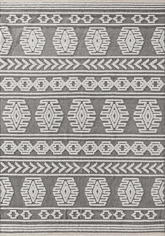 Etnik Kabartma Desenli Halı Dekhera Ella 8733 Gri