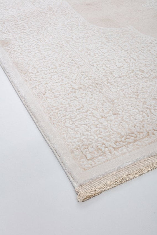 Etnik Kabartmalı Akrilik Halı Dekhera Warble B079 Krem Beyaz