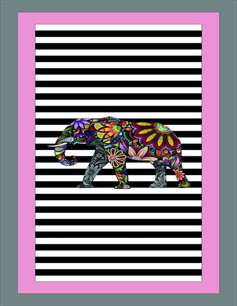 Fil Desenli Pembe Çerçeveli Halı Dekhera T1049-1
