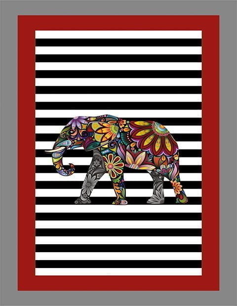 Fil Figürlü Kırmızı Çerçeveli Halı Dekhera T1164