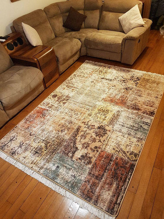 Bej Vizon Patchwork Halı Dekhera P5014-1