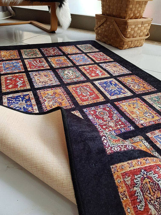 Patchwork Halı Siyah Dekhera P5011