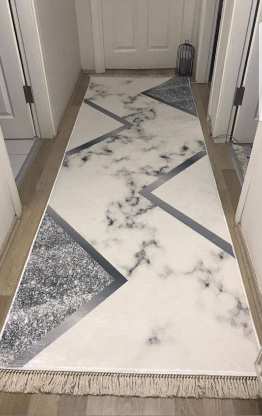 Beyaz Mermer Görünümlü Halı Dekhera M3034