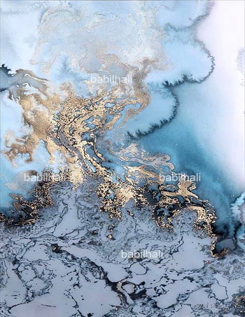 Mermer Desenli Halı Mavi Dekhera M3026-6