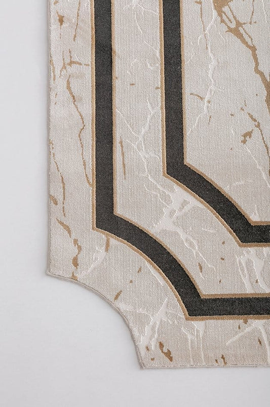 Lüks Tasarım Viskon Halı Dekhera Violent 6088 Bej Antrasit