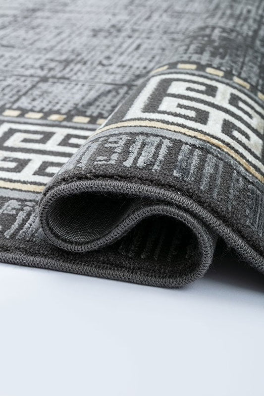 Etnik Desenli Kabartma Halı Dekhera Ella C045 Antrasit