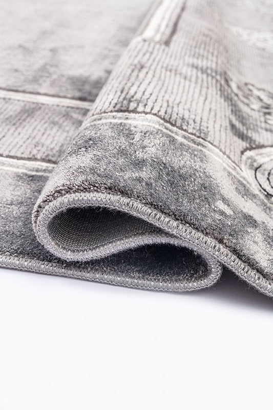 Otantik Desen Kabartmalı Halı Dekhera Ella C390 Antrasit Gri