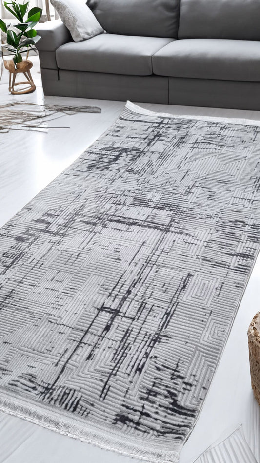 Spor Desen Viskon Halı Dekhera Violent B096 Antrasit Gri
