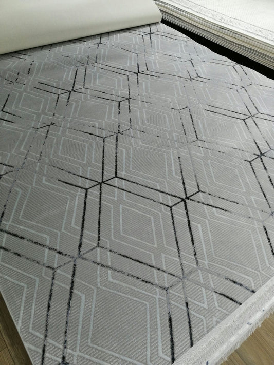 Dekhera Plato Parlak Dokuma Modern Halı Sl117 Beyaz Antrasit