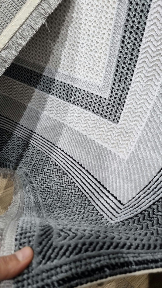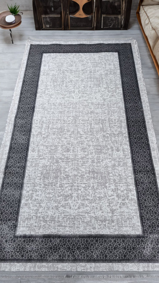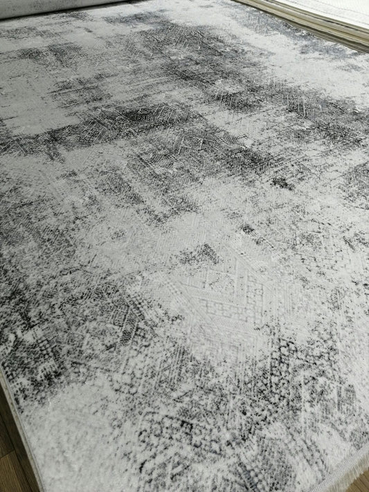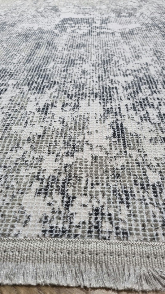 Dekhera Manolya Parlak Dokuma Karbartmalı Halı 5999 Beyaz Antrasit