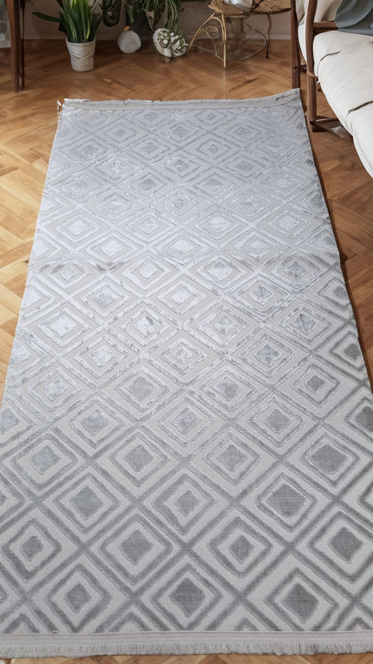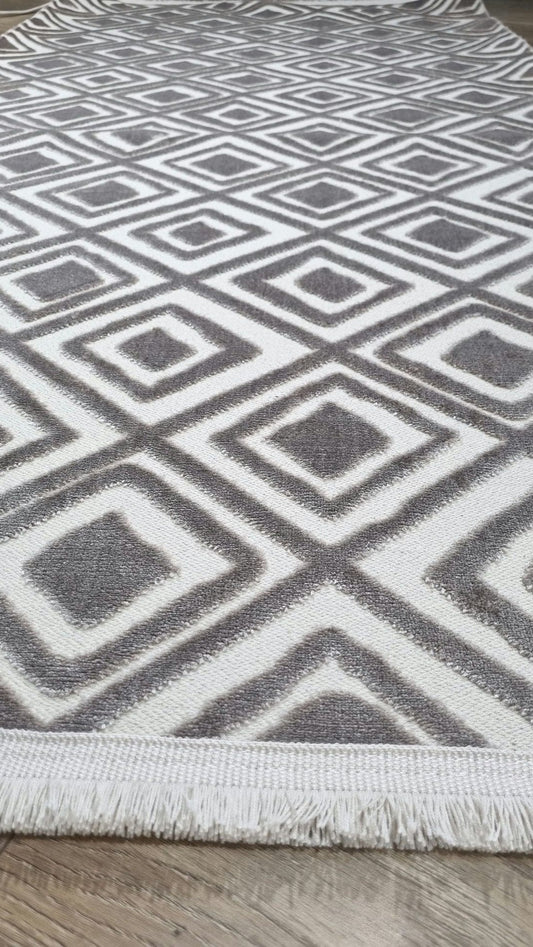 Dekhera Manolya Parlak Dokuma Karbartmalı Halı 5999 Beyaz Antrasit
