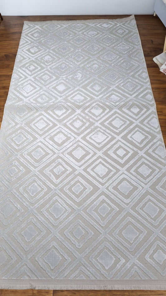Dekhera Manolya Parlak Dokuma Karbartmalı Halı 5999 Beyaz Vizon