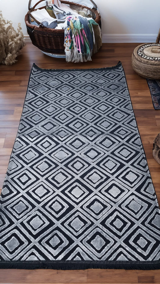 Dekhera Manolya Parlak Dokuma Karbartmalı Halı 5999 Siyah Antrasit