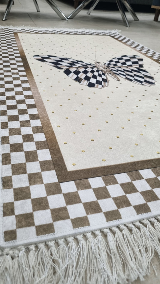 Dekhera Ömür Kelebekli Yıkanabilir Halı 5738 Vizon