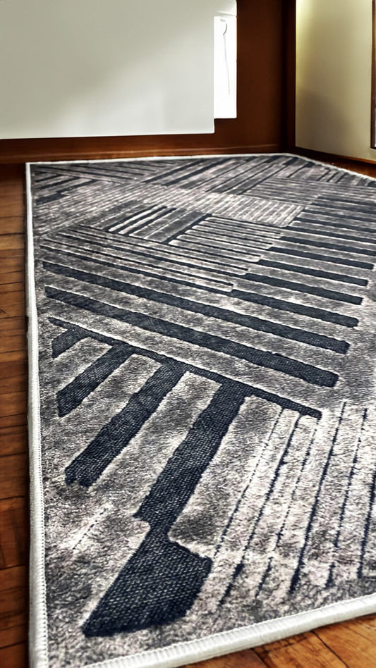Mermer Desenli Gri Çizgili Halı Dekhera M3023-3