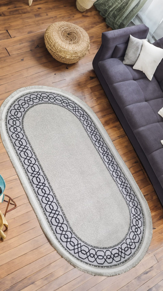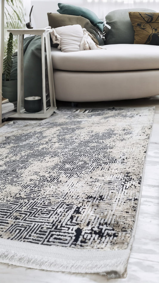 Dekhera Yıldız Parlak Kadife Dokuma Halı 1009 Gri Beyaz