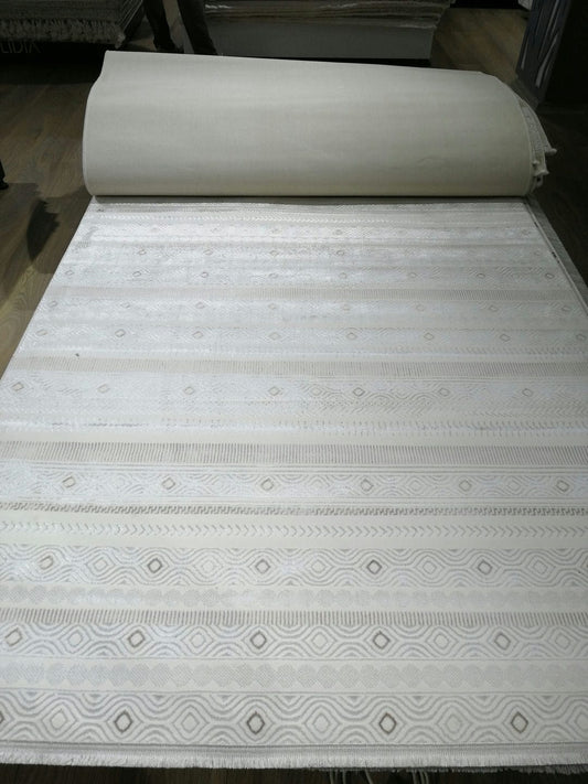 Baklava Desenli Beyaz Halı Dekhera İ7010-2