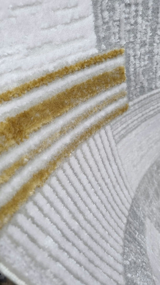 Sarı Gri Üçgen Desenli Halı Dekhera T1231