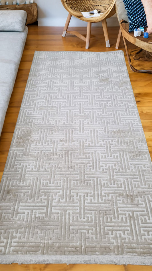 Dekhera Manolya Parlak Dokuma Karbartmalı Halı 5999 Beyaz Vizon