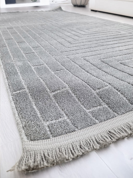 Dekhera Madrid Etnik Desenli Kabartmalı Halı MD04 Gri