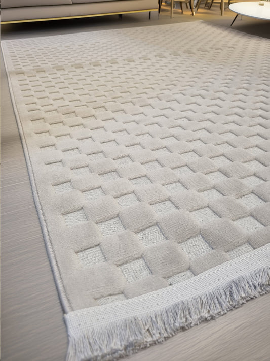 Dekhera Güzide Kalın İskandinav Halı 193C Beyaz Açık Gri