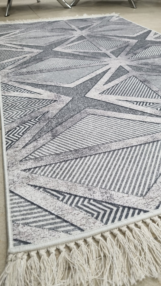 Dekhera Yıldız Parlak Kadife Dokuma Halı 1008 Gri