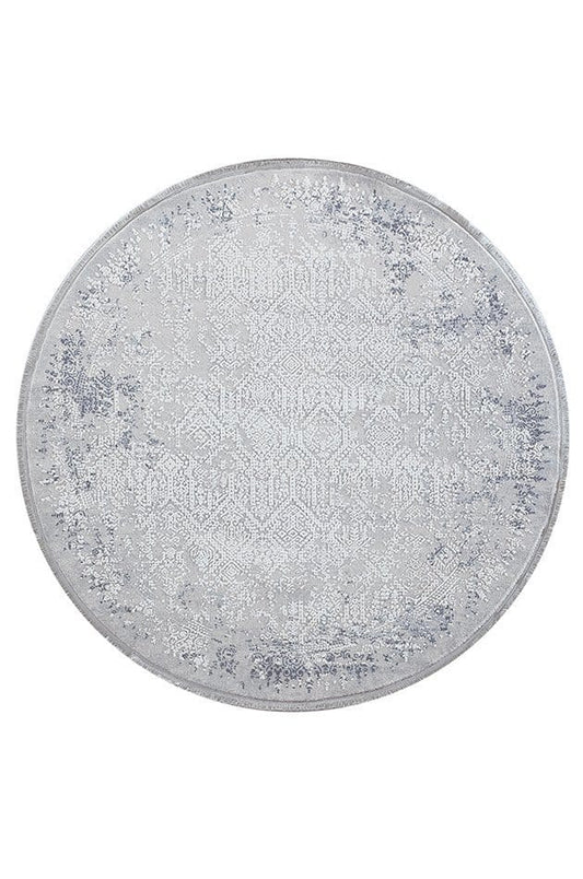 Akrilik Etnik Halı Dekhera Warble 5665 Gri Mavi Daire