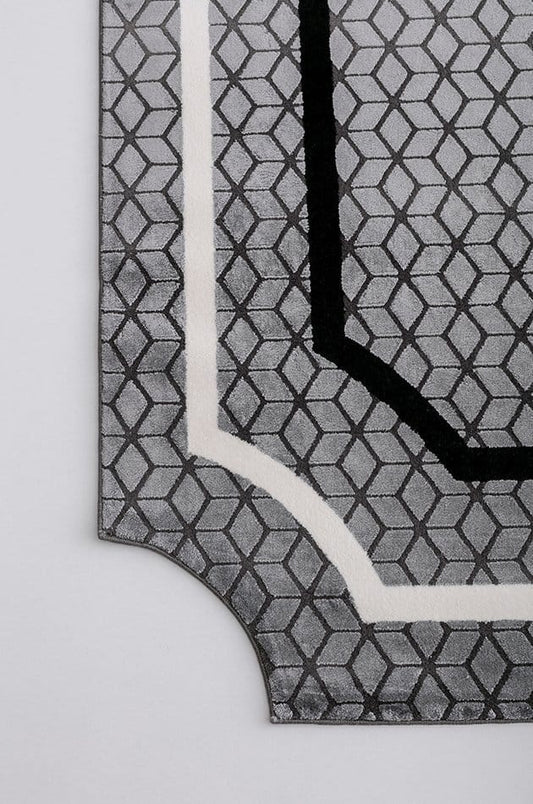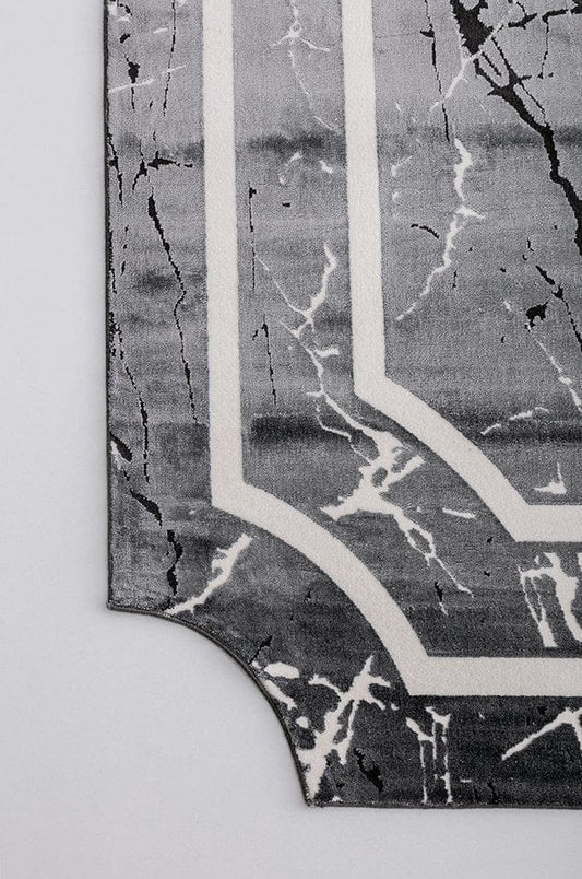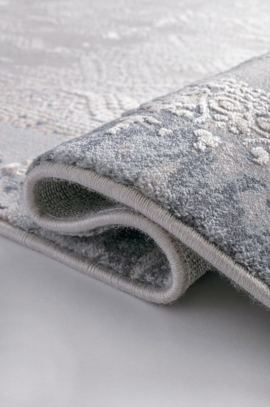 Lüks Tasarım Viskon Halı Dekhera Violent 6088 Gri Beyaz