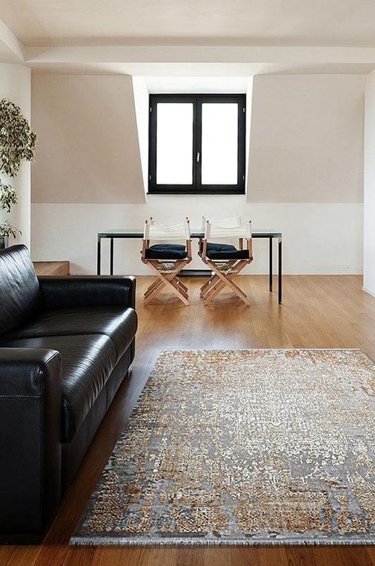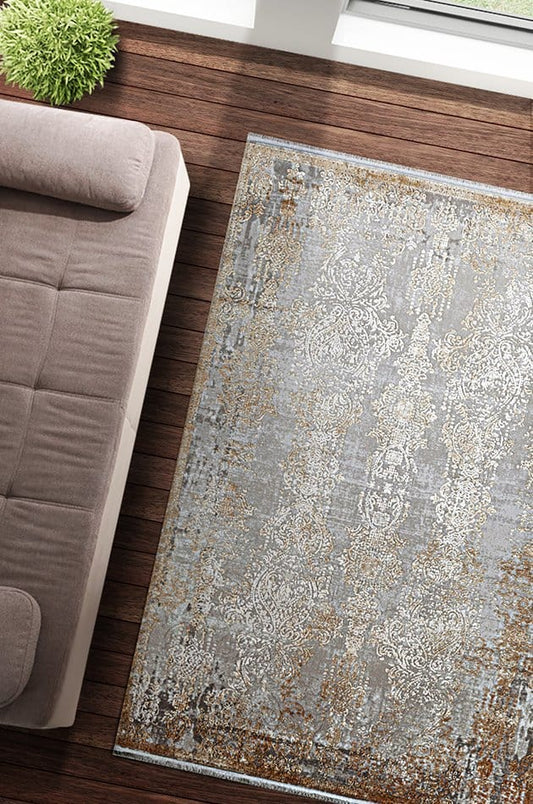 Lüks Viskon Halı Dekhera Violent A908 Gri Gold