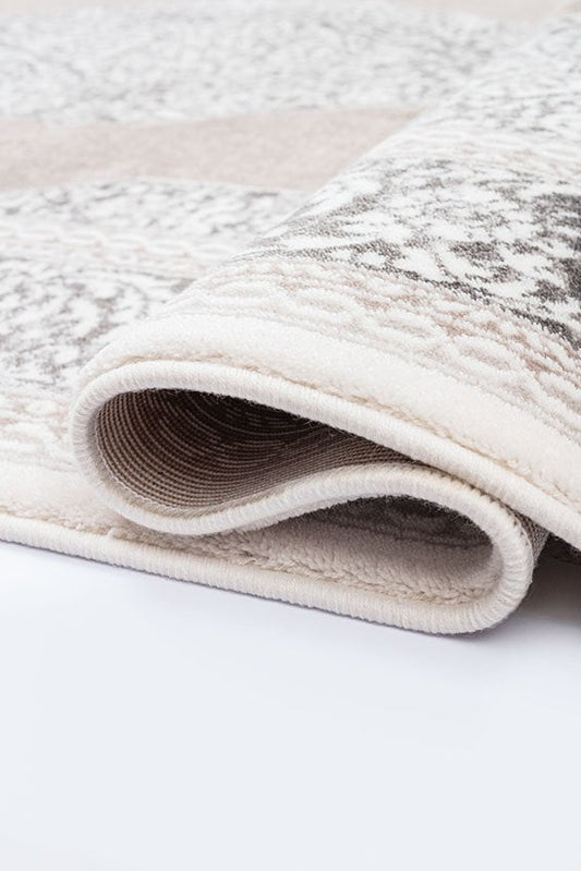 Etnik Desenli Halı Dekhera Warble 5810 Beyaz Açık Gri
