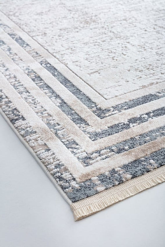 Çerçeveli Viskon Halı Dekhera Violent A929 Gri Bej