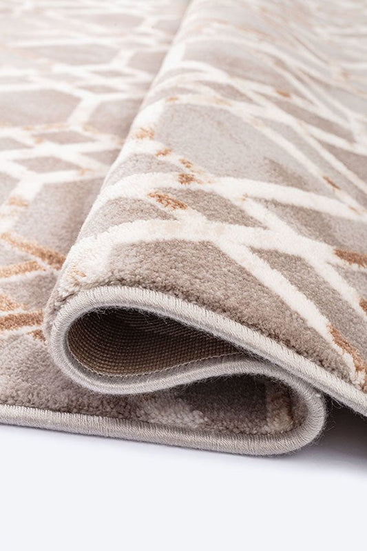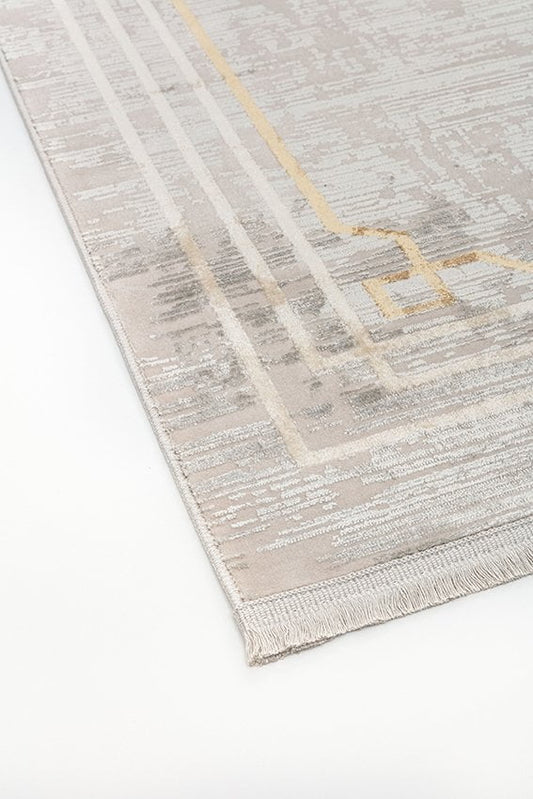 Lüks Tasarım Viskon Halı Dekhera Violent 6088 Gri Krem