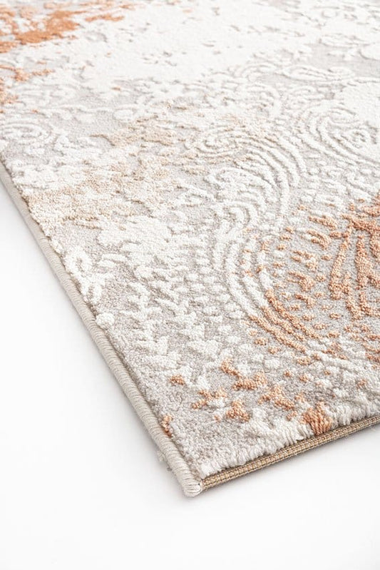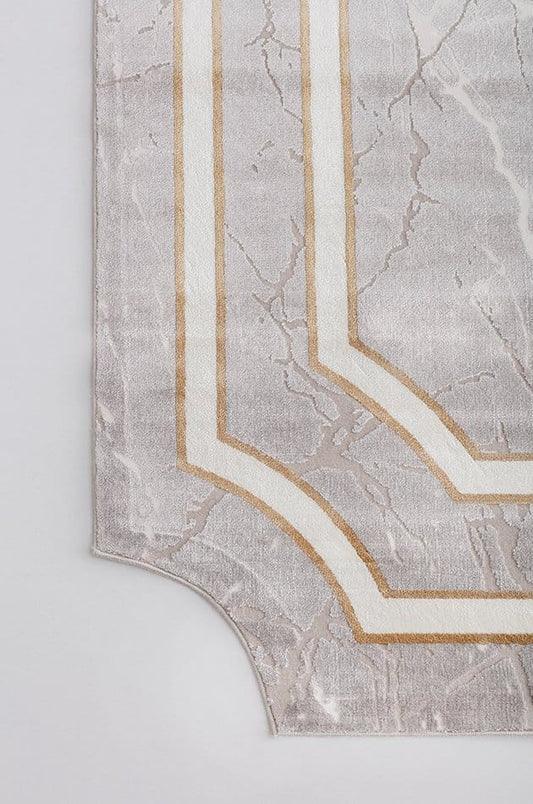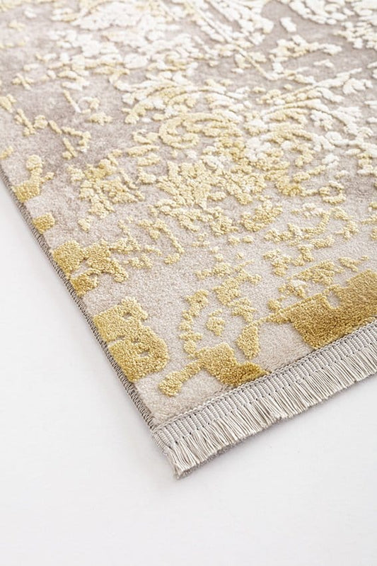 Altın Varak Desenli Halı Dekhera Mare Qk 8968 Gri Gold