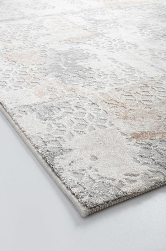 Lüks Kabartmalı Akrilik Halı Dekhera Warble B082 Gri Beyaz