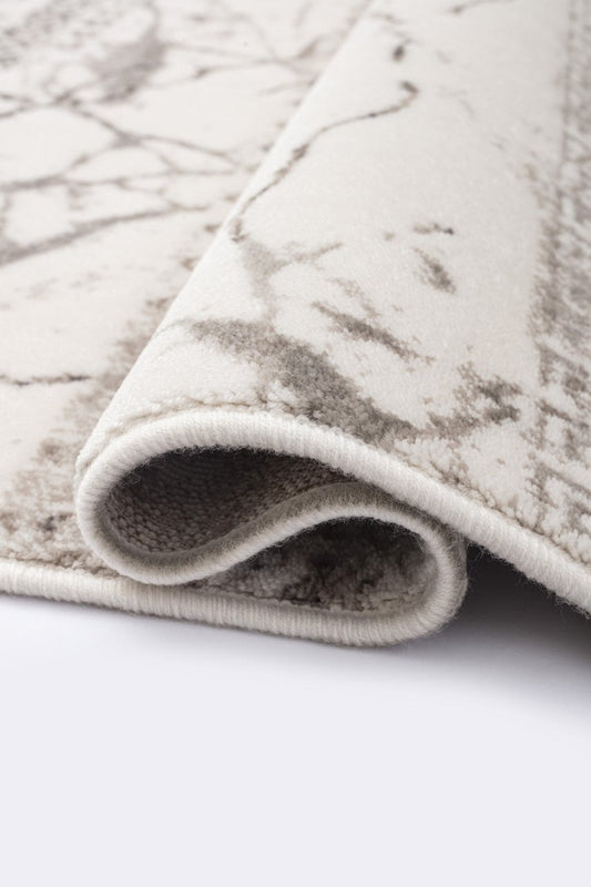 Mermer Desen Akriklik Halı Dekhera Honyy B653 Beyaz Gri