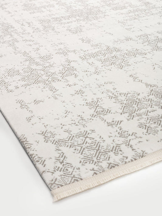 Modern Silik Desen Halı Dekhera Rustica B245 Beyaz Gri
