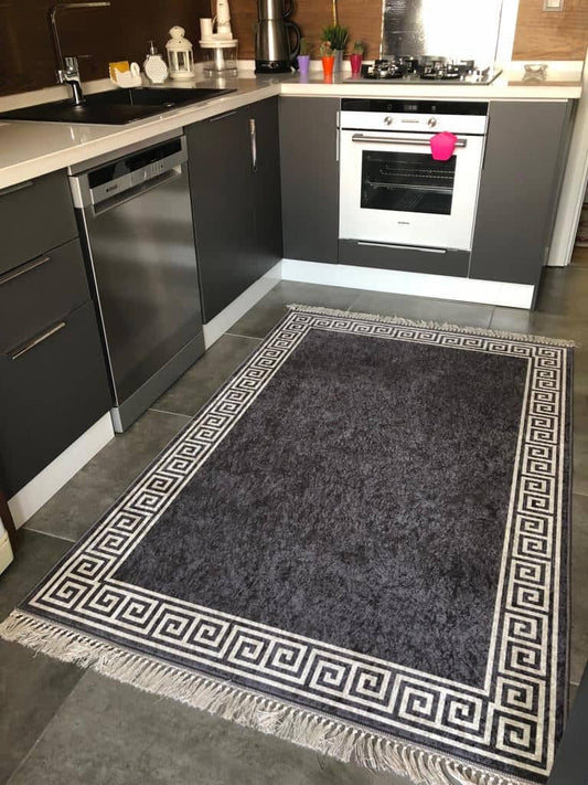 Siyah Çerçeveli Gri Halı Dekhera T1107
