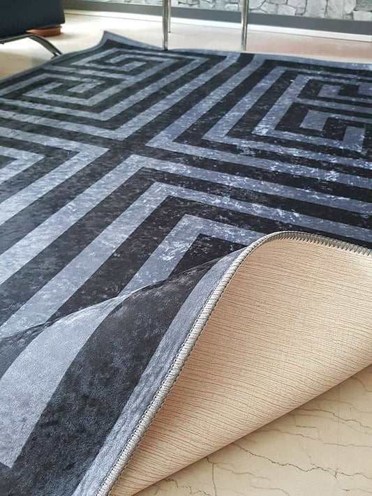Dijital Baskı Siyah Gri Halı Dekhera T1076