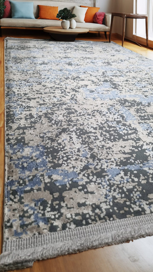 Dekhera Yıldız Parlak Kadife Dokuma Halı 1021 Gri Mavi