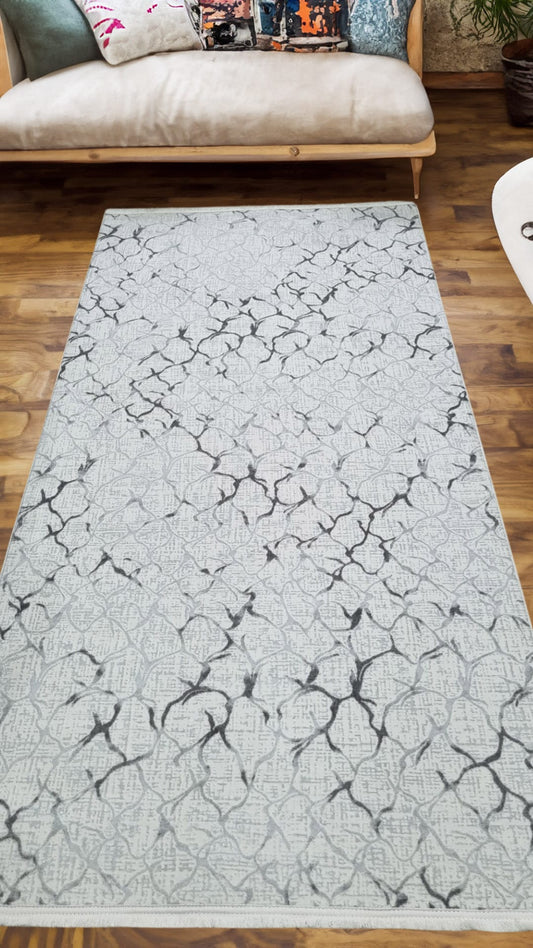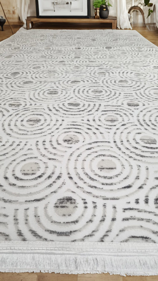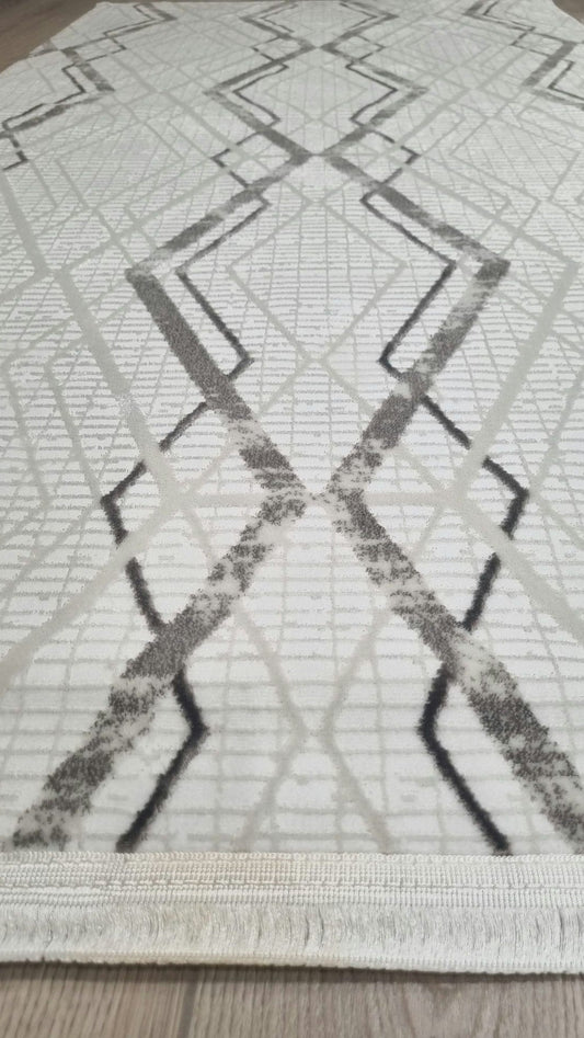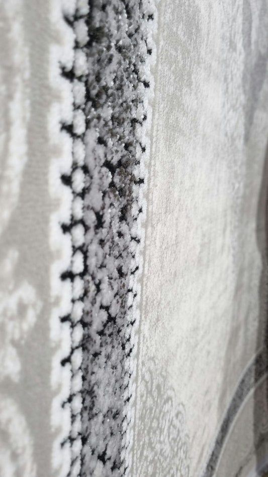 Dekhera Yıldız Parlak Kadife Dokuma Halı 1009 Gri Beyaz