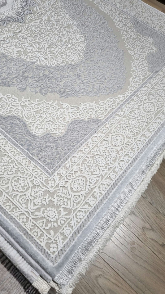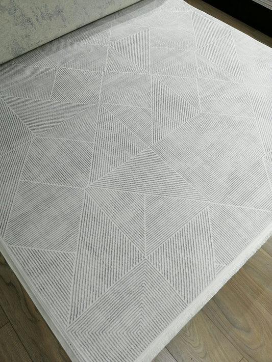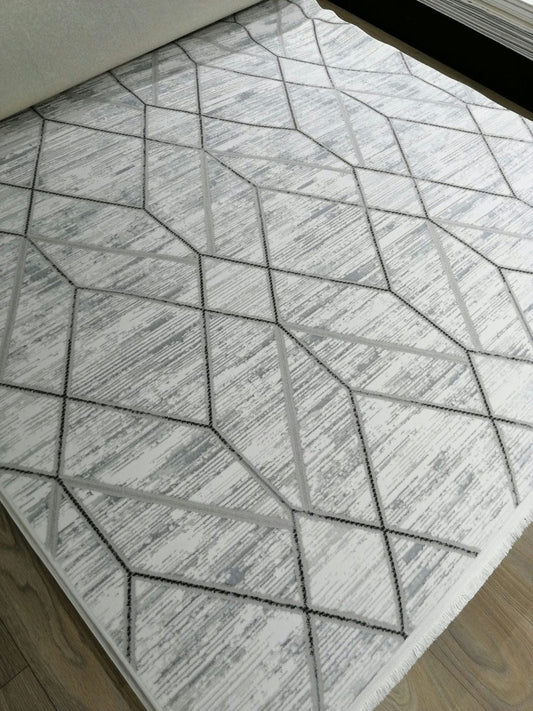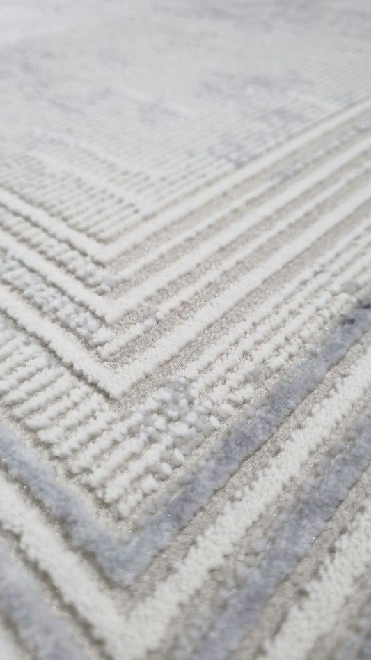 Dekhera Plato Parlak Dokuma Modern Halı Sl113 Beyaz Gri