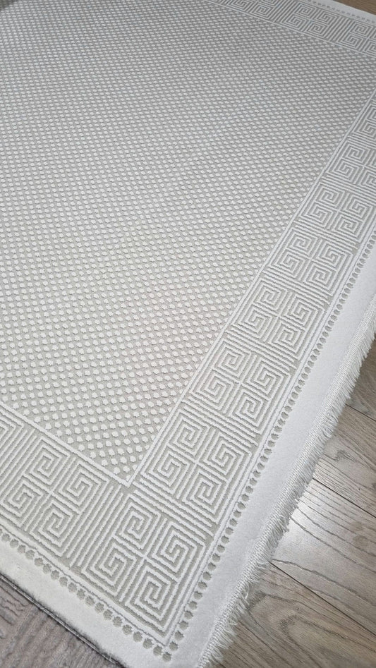 Dekhera Plato Parlak Dokuma Modern Halı Sl115 Beyaz Açık Gri