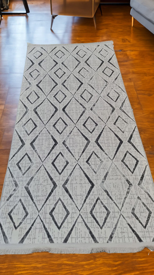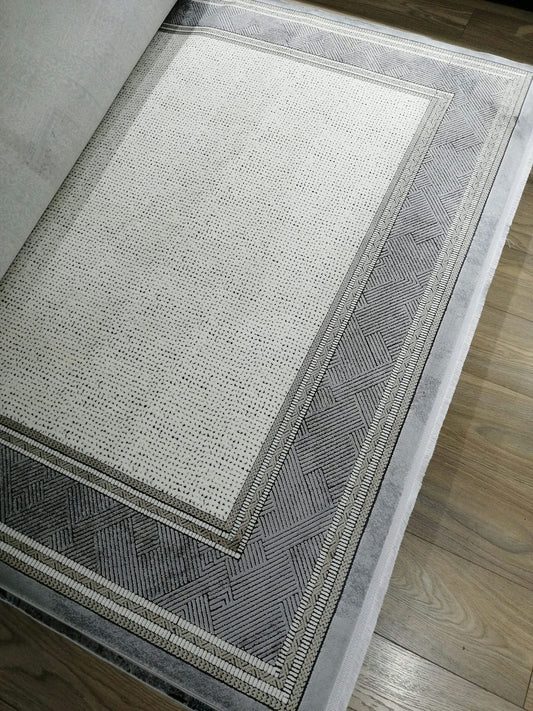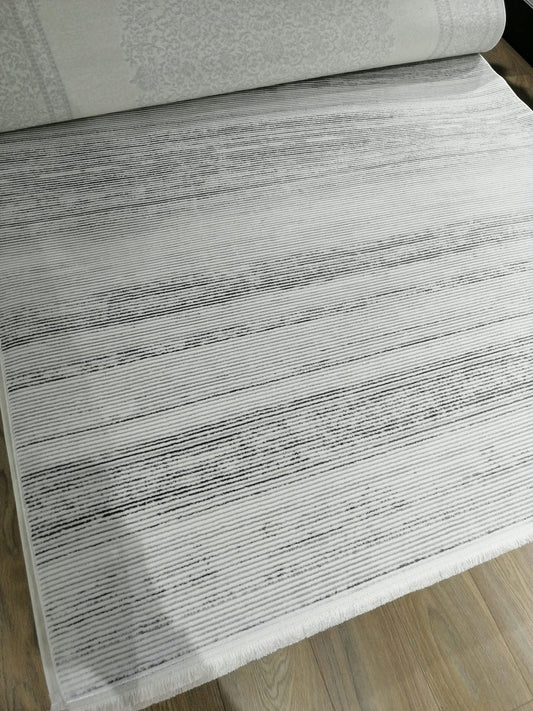Dekhera Plato Parlak Dokuma Modern Halı Sl114 Beyaz Koyu Gri