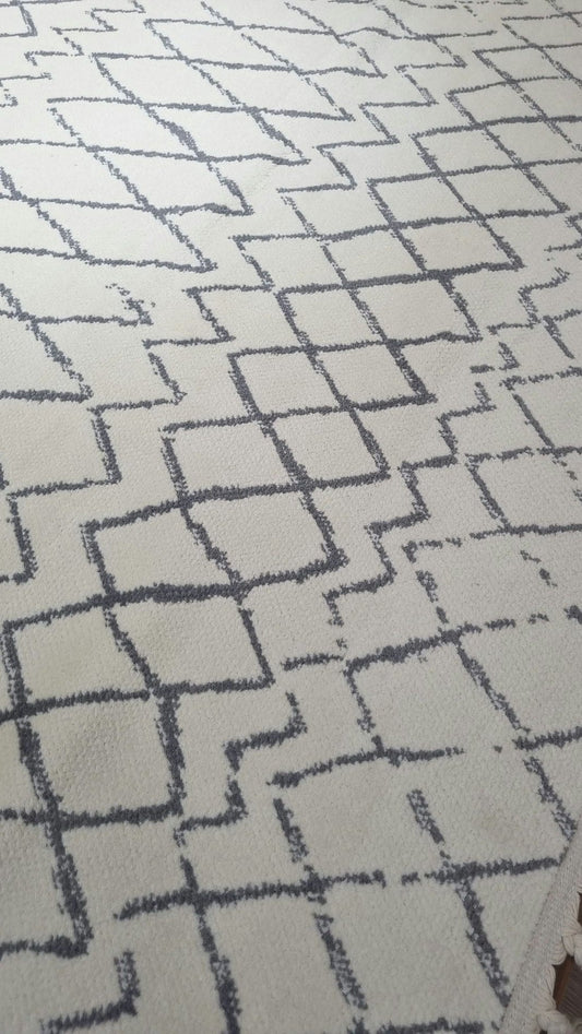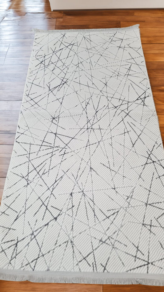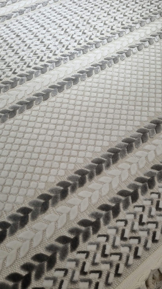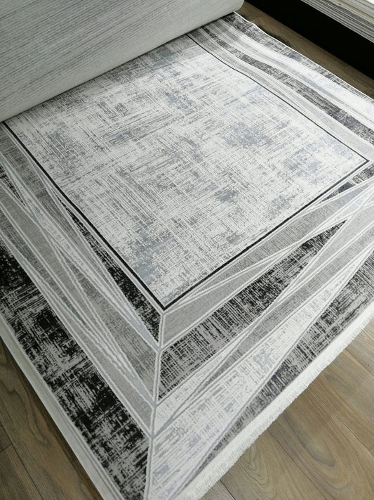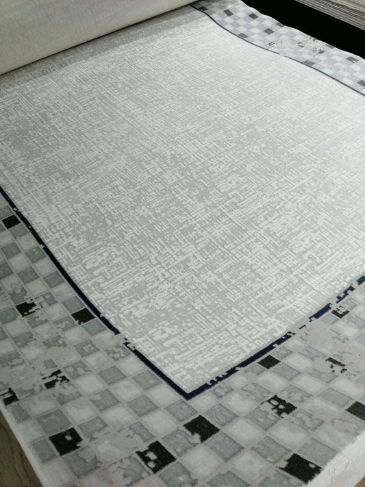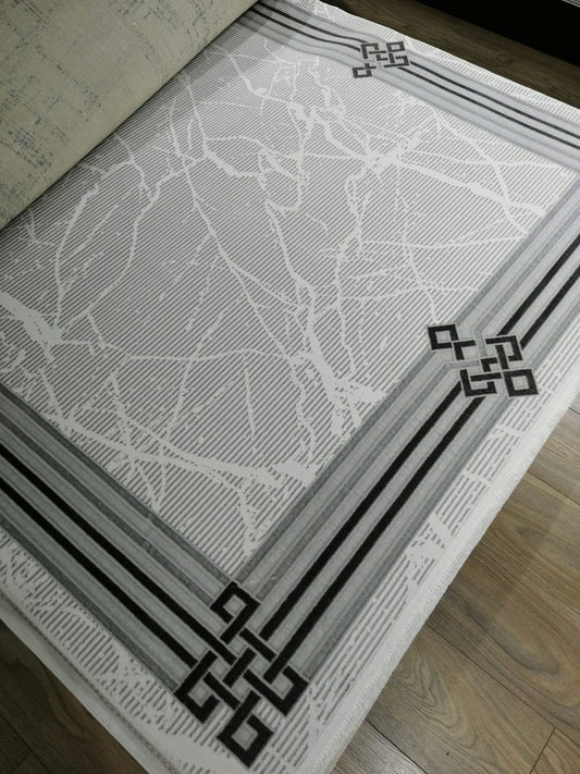Dekhera Plato Parlak Dokuma Modern Halı Sl113 Beyaz Koyu Gri
