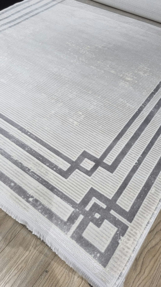 Dekhera Novva Modern Dokuma Halı 7595 Krem Gri